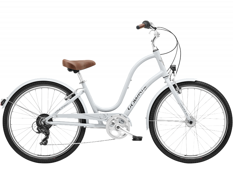 - Townie Original 7D EQ Step Thru — флагманская модель бренда Electra, которая удачно сочетает посадку круизера с динамикой и поведением городского велосипеда. Качественное оборудование и комплектующие делают модель дружелюбной, удобной, легкой и плавной в движении, не прихотливой к погодным условиям и плохим участкам маршрута. Ко всему визитная карточка Electra — дизайн, который ощутимо выделяется в общем потоке велосипедов и задает тренды для велоиндустрии.