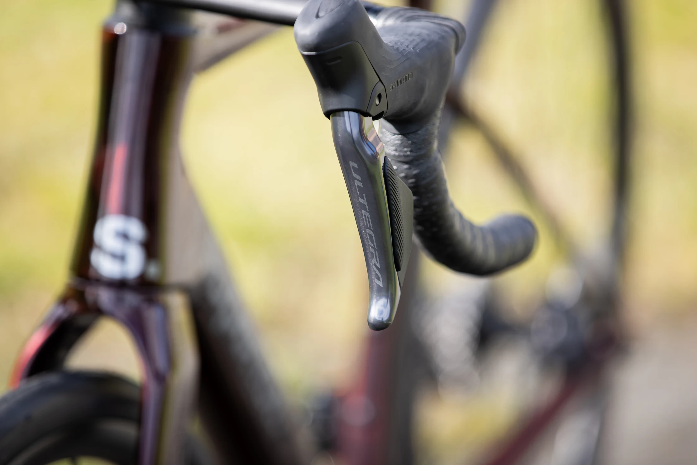 - Велосипед оснащён электротрансмиссией Shimano Ultegra Di2 2×12, которая обеспечивает быстрое и точное переключение передач без каких-либо компромиссов.